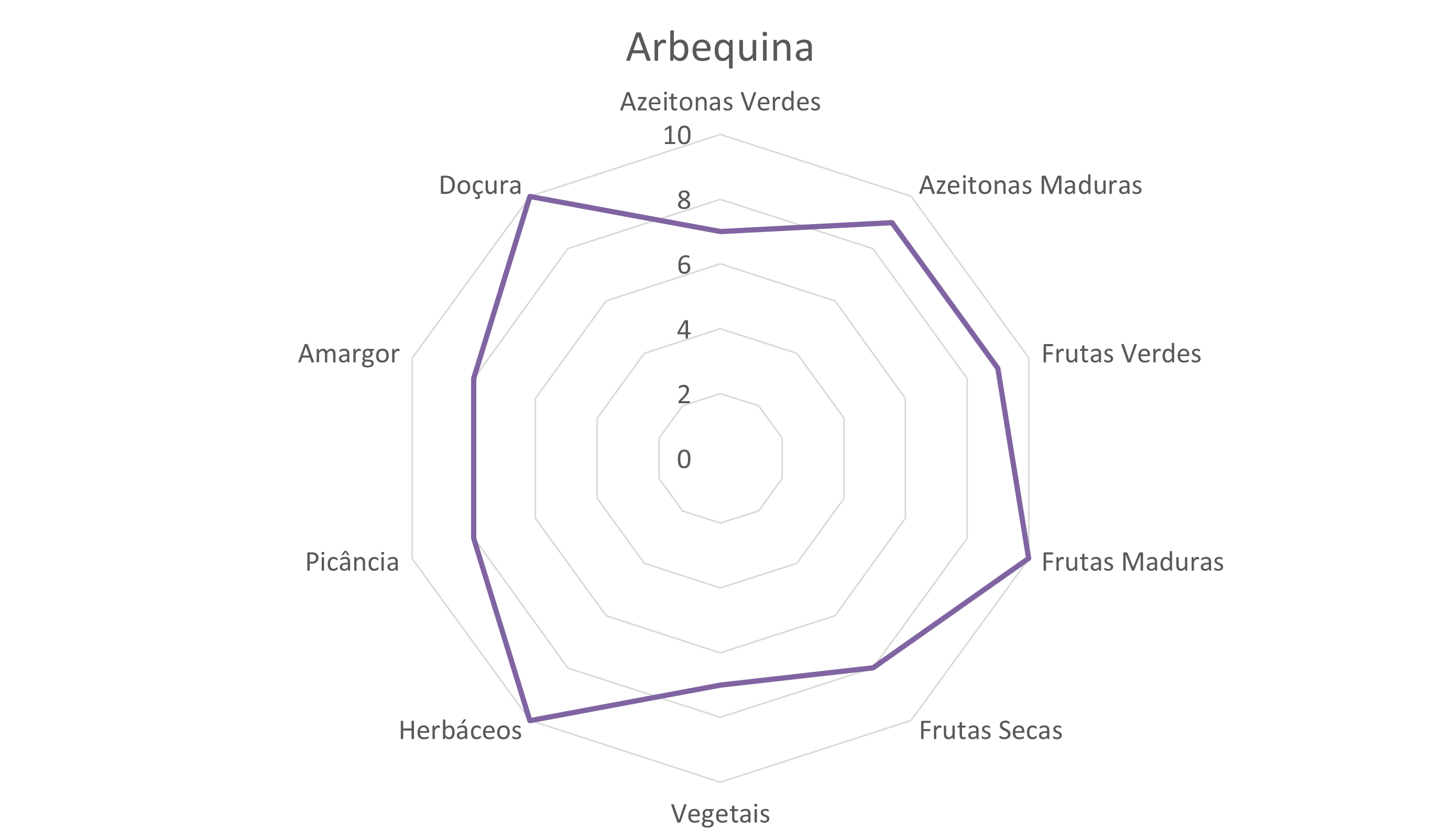 O monovarietal Arbequina é um azeite complexo e harmônico, intensamente fresco e frutado, que se torna uma presença indispensável em muitos acompanhamentos. Com notas aromáticas marcantes e sabores acentuados de frutas e ervas.Pontuação:86,5